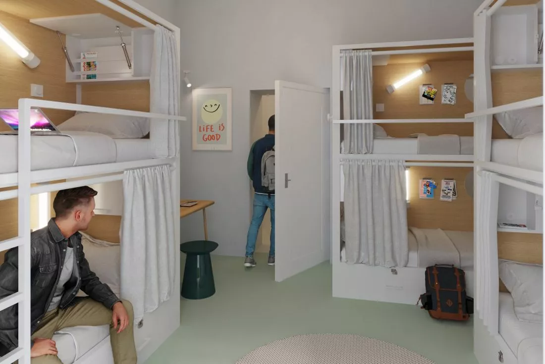 - Double and twin private rooms with private or shared bathroom